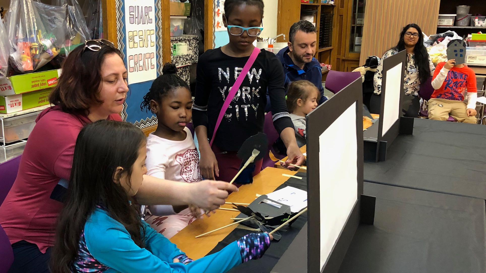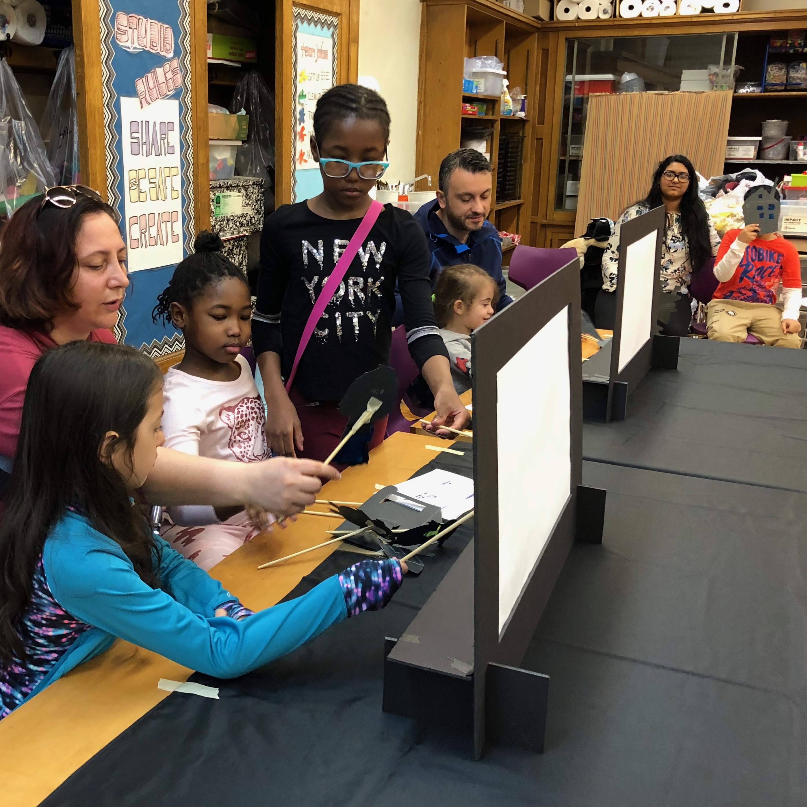 Students craft shadows that spark wonder and collaborative storytelling magic.